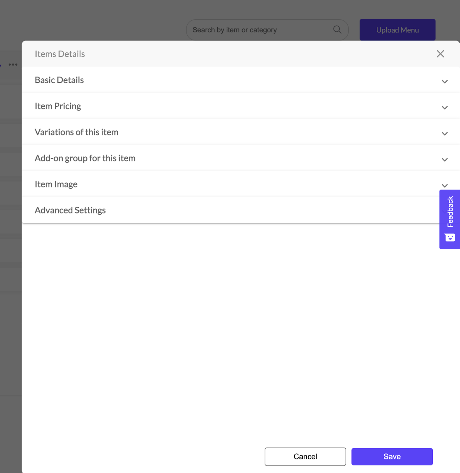 You can choose to Upsell other items along with this item, toggle button to activate and select from the list of other Items on your menu.